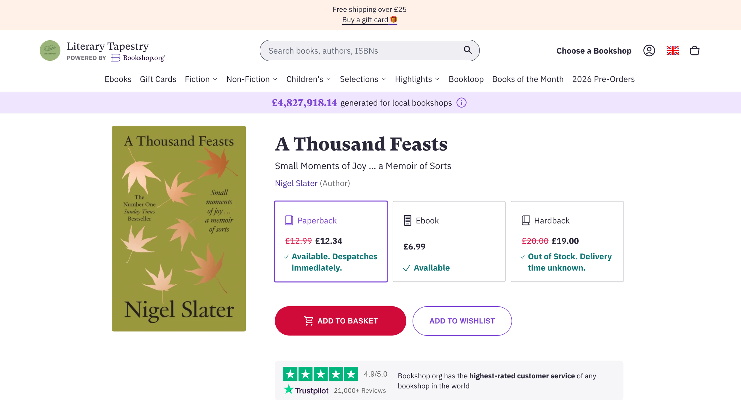 Bookshop.org is an online bookshop with a mission to financially support local, independent bookshops.